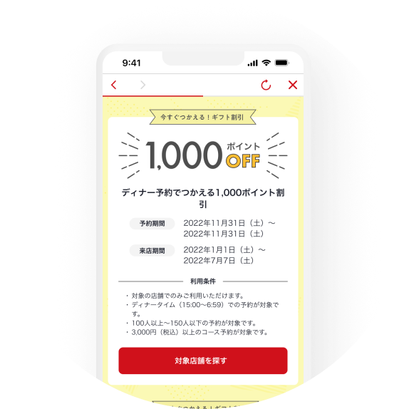 • ※ 一部のお店ではリクルート期間限定ポイントがたまります。