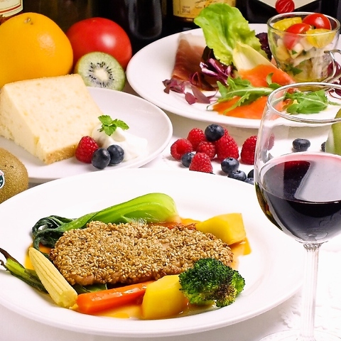 前菜から手作りデザートまで、旬のお野菜をふんだんにお楽しみ頂けるコースです!ビュッフェスタイルで様々な料理をしっかりご堪能頂けます。ジャンルにこだわらず、毎回違う料理を楽しめるところも、気に入って頂いているポイントです。ビールやワインも含む飲み放題も嬉しい♪