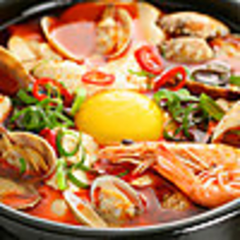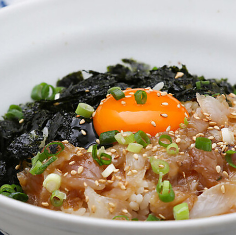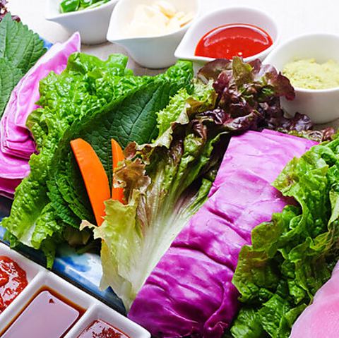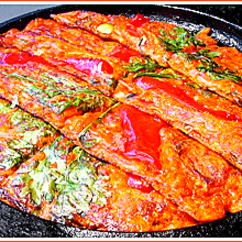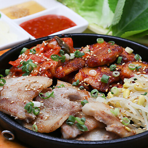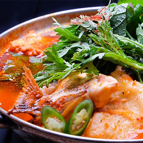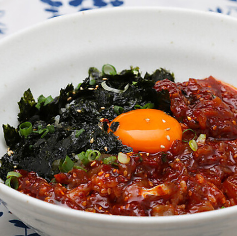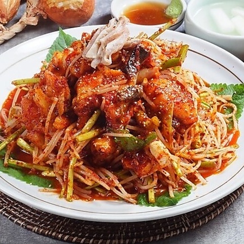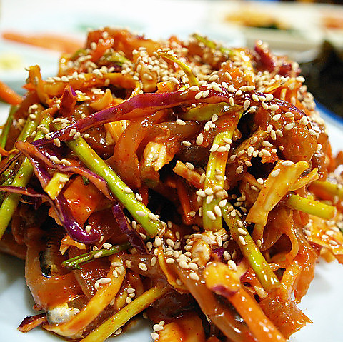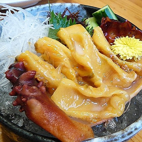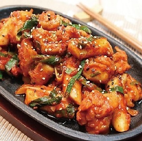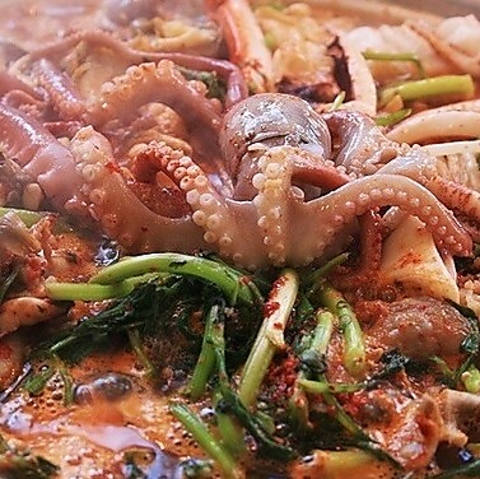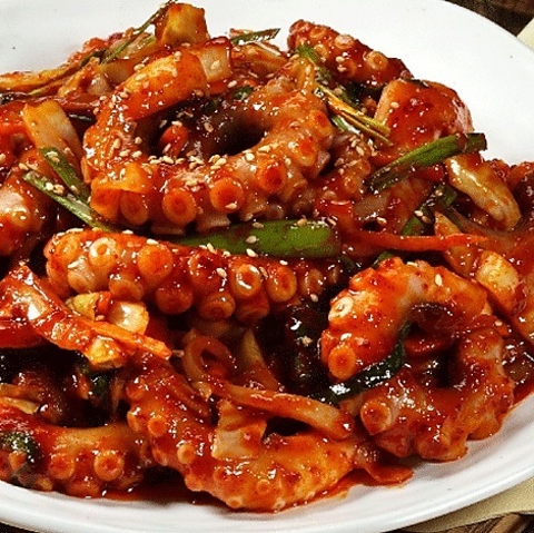 水槽から取り出したばかりの新鮮な生イイダコの踊り食いサンナッチが大人気!活きたまま調理し、まだ動いてる状態でご提供いたします。吸盤が口の中でくっつくこともあるなど、その食感や風味はまさに珍味!ぜひ一度味わっていただきたいおすすめの一皿です。ソースは、香ばしい胡麻油と酢コチュジャンの2種類をご用意いたしました。