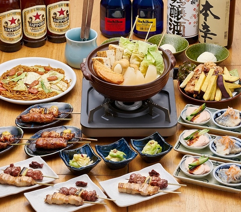 コスパ良しの宴会コース★前菜、串焼き、揚げ物、鍋、デザートなど串八珍の看板メニューがお楽しみいただけます♪メインのお鍋はお出汁のうまみがたまらない「鶏だしおでん鍋」!会社宴会や女子会など、各種宴会にオススメです。ぜひご利用ください!