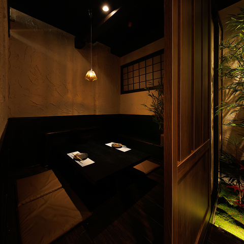 【2名から4名様用席】仕事帰りにふらっと一杯、仲間との気軽な飲み会にご利用下さい。少人数でゆったりお過ごしいただける空間。名物博多もつ鍋や馬刺しなど本格九州料理と、厳選芋焼酎を囲めば会話も弾みます。日常使いにも、ちょっとした記念日にも。皆様のご来店を心よりお待ちしております。