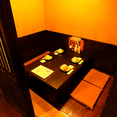 【落ち着いた和個室店内】少人数からご案内OK!柔らかな光がぬくもりをもたらす和やかな店内で、美味しい九州料理とゆったり過ごせる時間をお楽しみください。名物博多もつ鍋や馬刺し、厳選芋焼酎を囲めば会話も弾みます。デート・女子会・ご家族のお食事など、様々なシーンにご利用いただけます。