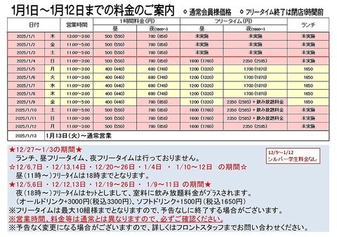 4月29日~5日6日の期間【通常料金・通常営業時間・通常プランとは異なりますので、お問い合わせください】