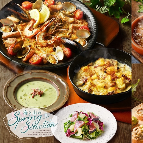 「海と山のSpring Selection」開催中!海と山の春の恵みを楽しむ期間限定の春メニューをお楽しみください。