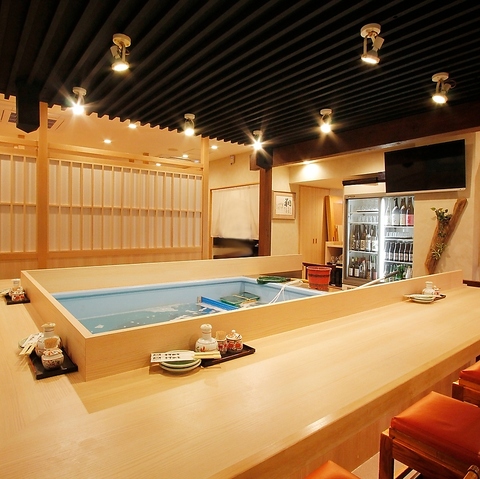 1名からOK!生簀を囲むカウンターは全12席