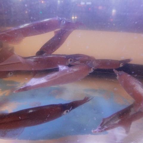 ヤリイカ、スルメイカを三崎から運んできます!店内入口にある水槽で毎日元気に泳いでいます!新鮮だからこそ味わえる素材本来の甘みを是非ご賞味ください。