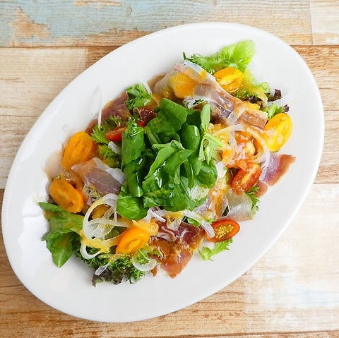 当店自慢のローストビーフを4枚使用した贅沢サラダ。ブルーチーズドレッシング、和風ソースの組み合わせが美味しさを際立たせます。