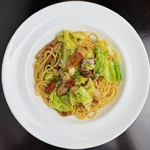 ◎揚げナスとセミドライトマトのバジル香るジェノベーゼ◎春キャベツと南洲ポークのポルケッタ アンチョビソーススパゲティ