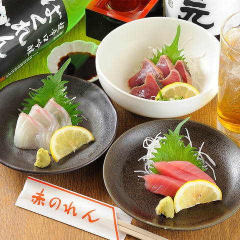 当店は、毎朝大阪にある市場から新鮮な魚介類や野菜などを直接調達しております。是非、当店自慢の海鮮・創作料理を存分にお楽しみください!お造りやお寿司をはじめ、天使の海老天ぷらや太刀魚塩焼き、金目鯛煮付けなど、厳選して取り揃えた鮮度抜群の海鮮を様々なお料理でご提供いたします。