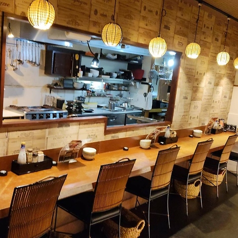 アジアンテイストのオシャレな椅子。カウンタースペースは、1人でも食事を楽しめます