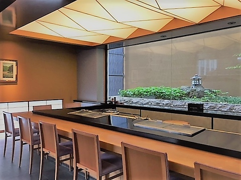 正面にひろがる中庭をサカナに、ゆったりとカウンターでおくつろぎください。