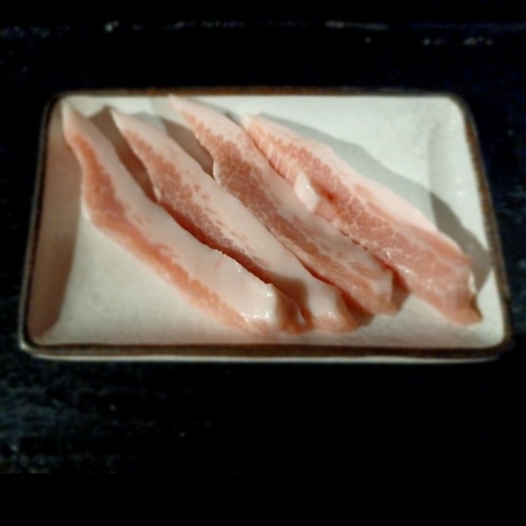 脂の旨味と赤身のコクが絶妙な厚切りバラ肉。網で焼けば香ばしい香りが立ち上り、口の中でジュワッと広がる極上の脂の余韻。