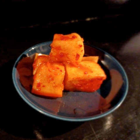 大根の甘みと辛味が絶妙に融合。炭火焼肉の合間に食べると口の中を爽やかに整えます。