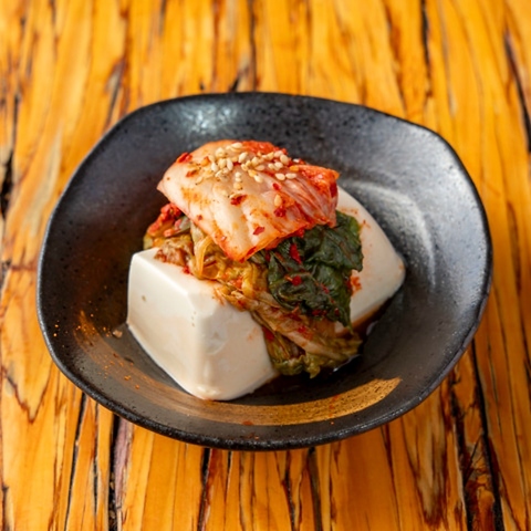 滑らかな豆腐とピリ辛キムチの絶妙な組み合わせ。炭火焼肉の合間に食べれば口の中がリフレッシュ。