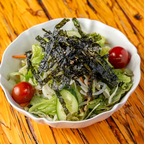香ばしい胡麻油と海苔が香るチョレギサラダ。シャキッとした野菜と濃厚な味付けが肉との相性抜群。