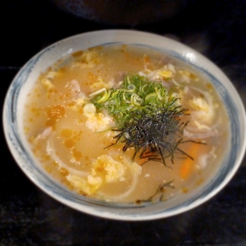 熱々のスープにご飯と具材が溶け込み、炭火焼肉の後でもほっとする旨味たっぷりの一杯。