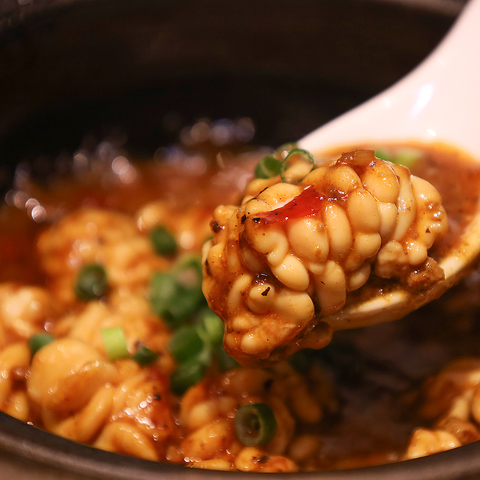 【今月限定!!】プリッとした真たちの濃厚な旨みと、自家製麻婆の辛みと痺れが絶品。土鍋で味わう、この3月限定の一皿をぜひご堪能ください。おすすめの食べ方は、白いご飯にドンとのせて豪快に!