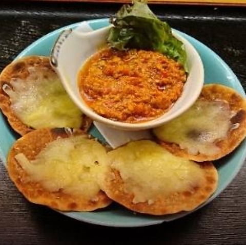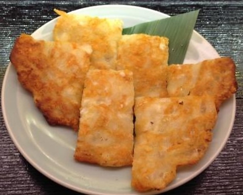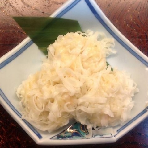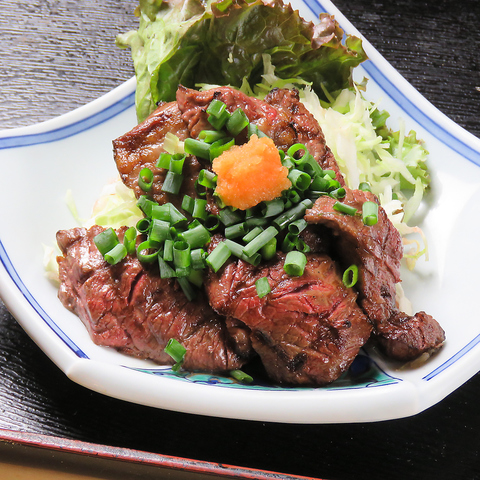 やわらかくジューシーなハラミのお肉を使用した牛たたき。その場でお肉を炙り、半生の状態でお召し上がりいただきます。お酒のお供としても相性抜群◎店主オススメの自家製のニンニクポン酢をつけてお楽しみください。