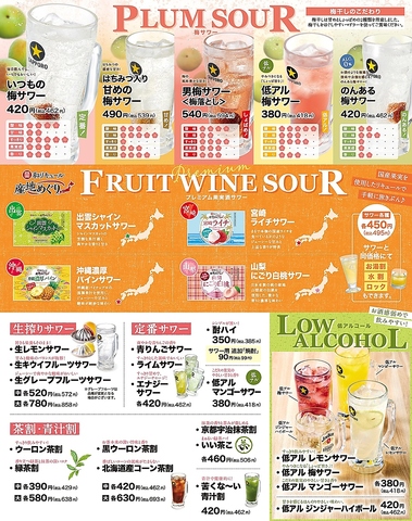 | 梅サワー | いつもの梅サワー/低アル梅サワー |