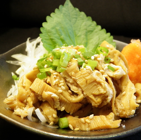毎日屠畜場から仕入れるホルモンは新鮮そのもの。特に豚の大腸を脂をつけたまま提供する「シロマル」は人気No.1メニュー!噛むほどに甘く濃厚な脂が溢れ出します。網の上でコロコロ転がしながら強火でさっと焼き、ふっくらしてきたら食べごろ。脂が付いていない「シロ」はさらに滋味深く、お酒のつまみにぴったりです。