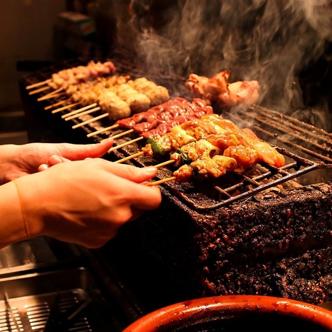 紀州備長炭『ほんまもん』を贅沢に使用しております。検査に合格した選りすぐりの炭だけで焼き上げた焼き鶏はおいしすぎて手が止まりません!窯出から3ヶ月以内の物を常時利用し、着火まで3時間以上かけてじっくりと時間をかけて準備しております。