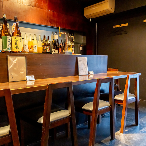 黒を基調とした1階は、重高感のある高級な雰囲気が魅力。お仕事帰りのサク飲みやご友人・同僚との気軽な一杯にぴったりのカウンター席です。