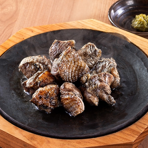 宮崎の自然に囲まれのびのびと育った「みやざき地頭鶏(じとっこ)」豪快な炭火で一気焼き上げると、噛むほどに口の中に香ばしい炭の香りが広がり、地鶏本来の食感とジューシーさが楽しめます。※お好みで柚子胡椒をつけてどうぞ