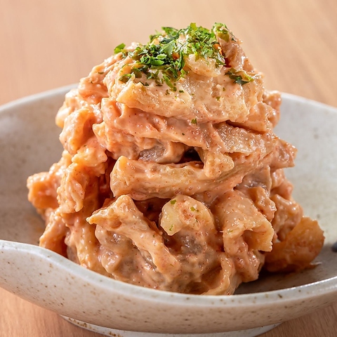 クニクニとした地鶏の皮の食感が特徴のピリ辛おつまみです。