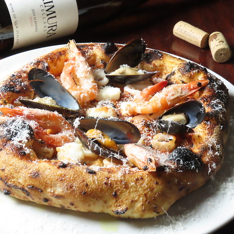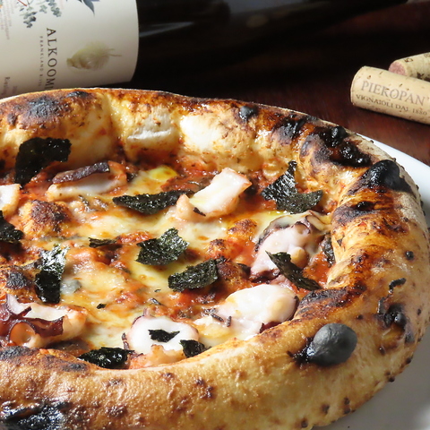 "ナポリピッツァの進化系!「ピッツァ・コンテポラーネア」は高く上がったコルニチョーネ(縁)が特徴的で「カリッ・フワッ・モチッ」の食感に仕上がります。高温の薪窯で職人が焼き上げる、明石の魚介や近隣農家から届く食材を活かした進化したピッツァ・コンテンポラーネアが大人気!