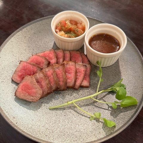 サルサソース・ガーリックベースのステーキソースをつけてお召し上がりください♪