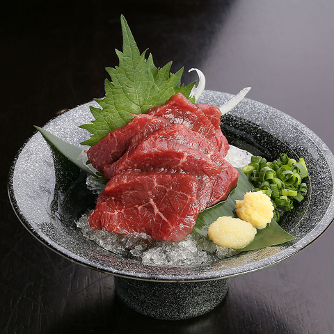 変わらぬ人気の新鮮な馬刺しを老舗キンコー醤油の九州甘口醤油とお好みの薬味と一緒にお召し上がり下さい。