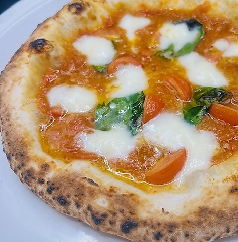 ナポリピッツァ伝統のレシピである『小麦粉・水・塩・イースト』シンプルだからこそ素材を厳選し、ナポリピッツァ独自の生地の食感や味わいを再現するため機械や麺棒ではなく人の手で生地を丁寧に伸ばします。そして、最も重要な『焼き上げ』を450℃の石窯で丁寧に行う事で、焼き目が香ばしいナポリピッツァが完成します☆