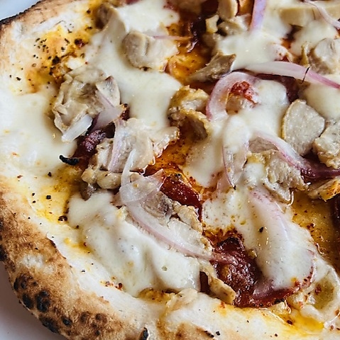 ハーブチキン、ナポリサラミ、唐辛子、オニオン、モッツァレラ/スパイシーなピッツァ。[M…2189円(税込)]
