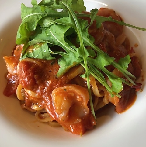 エビとルッコラのトマトソース タリオリーニ