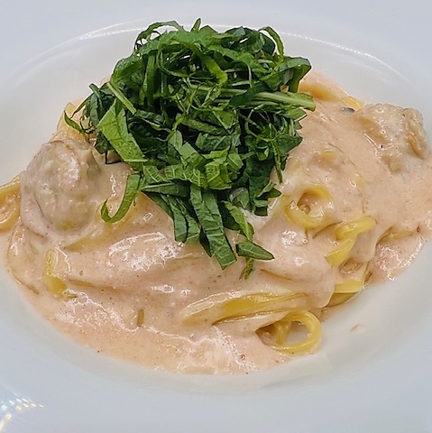 明太子とホタテと大葉のクリームソース タリオリーニ