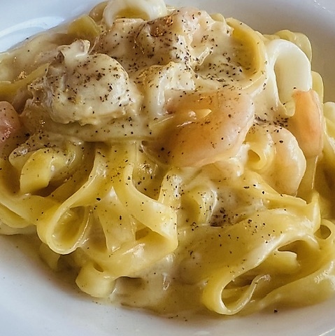 海の幸のカルボナーラ タリアテッレ