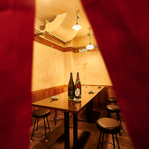 香ばしい炭火の香りと、料理長が魅せる鮮やかな手捌き。カウンター席は、焼き立てのもつ焼きや蒸し立ての点心が一番美味しい瞬間を味わえる贅沢な特等席です。昭和の風情漂う横丁で一杯やるような、粋なひとときを。お一人様のサク飲みはもちろん、肩を並べてデートにも最適です!
