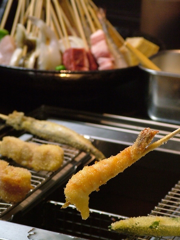 自分の好きなネタを好きなだけ食べられる!何と驚きの88品食べ放題なので、食べ盛りな人も美味しいものに目がない人も満足してもらえること間違いなし★新鮮な油でカラッと揚げたら、ぜひ熱々の内に食べて下さい!素材本来の美味しさが衣の甘さを加えて更に美味しくなってるんです◎串揚げだけでなく、サイドメニューや〆のご飯も豊富にご用意♪