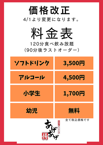 あげあげはアルコール飲む人・飲まない人で価格分けOK