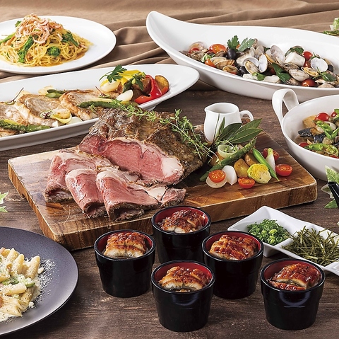 ゴールデンウィークの特別な夜に、旬の味覚を楽しむ華やかなディナービュッフェ目の前で切り分けるカービング実演付きのローストビーフをはじめ「鰻のひつまぶし風」や「鰆とタケノコのオーブン焼き」、トリュフソースで仕上げた「豚肉のソテー」など、食べ応えあるメニューがそろいます。