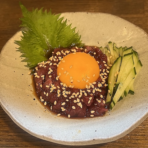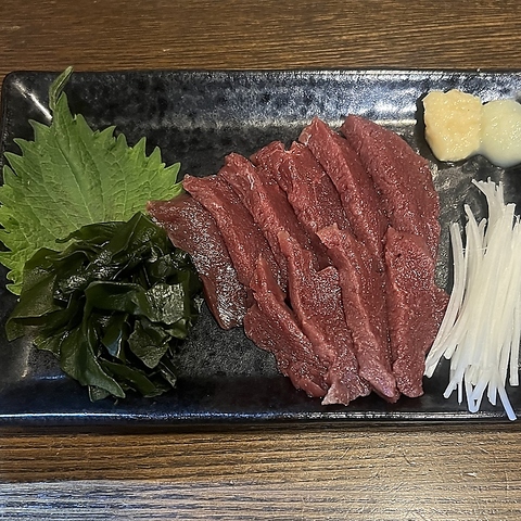 高タンパク低カロリーなのにしっかりとご堪能いただける馬刺しは、安定の人気おすすめメニューです!お酒のお供としても楽しめ、ついついお酒が進んでしまいます☆スライスした赤身馬肉と一緒に、付け合わせのワカメ、しそ、薬味などとお召し上がりください♪