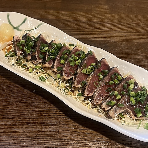 新鮮なカツオのたたきは、飲み会のお供にぴったり!ネギと柚子ポン酢のさっぱりとした組み合わせで、いくらでも食べられちゃう!自家製味噌が大人気の「キャベツ味噌」はお酒のアテに最適♪その他「和風クリームチーズ」や「もつ煮込み」、「串揚げ盛り合わせ」など、お酒と相性抜群の一品料理を各種ご用意しております!