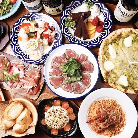前菜盛り合わせやカマンベールのアヒージョ、選べるPizzaに2時間飲み放題がついたお得なコースです♪歓迎会・送別会などの各種宴会から、誕生日会や女子会などにもぴったりです◎コースは2500円からご用意◎ご予算やシーンに合わせてご利用ください!