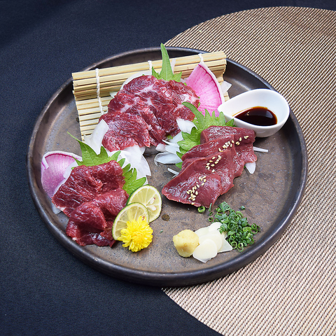 九州といえば馬刺し。当店では熊本より直送の【赤身】【ふたえご】【上馬刺し】【霜降り】と各部位の馬刺しをご用意。全4種の部位の刺身や盛り合わせが人気♪リピート率100%の看板メニューです♪※価格は最低価格です。詳細は店舗まで