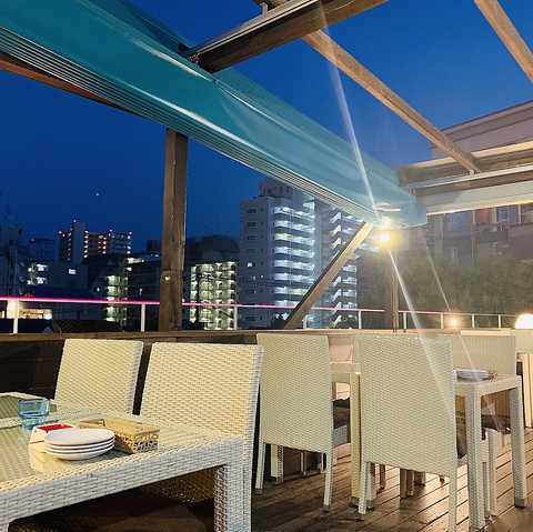 【二次会やプライベートパーティ大歓迎♪100名収様以上収容!】スタッフが親身にご相談に乗ります!まずはお気軽にお問合せください。青い屋根があるので雨の日でも大丈夫!是非テラス席で料理をご堪能ください!