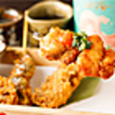 厳選された食材を使用したバラエティ豊かなメニューが魅力です。ジューシーな秀麗豚や鶏ムネ、シャキッとしたおくらや玉ねぎ、風味豊かなエリンギなど、素材の味をお楽しみいただけます。はんぺんやチーズ、えび、イカ、うずらといったユニークな串揚げも揃い、どれもサクサクの衣で包まれています。