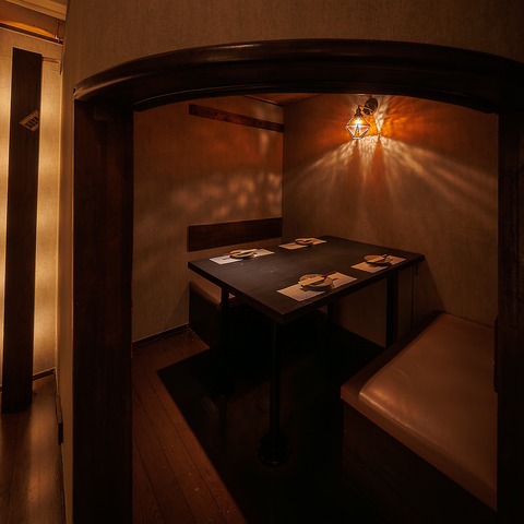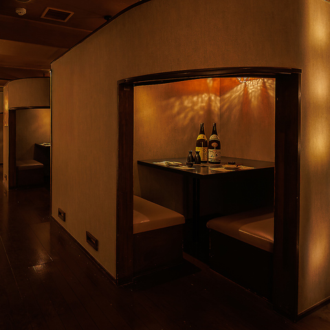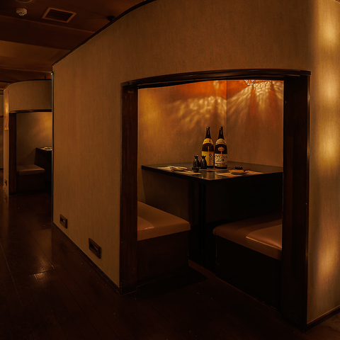 【2名様向け完全個室】大切なひとときをゆったりとお過ごしいただける、プライベート感を重視した完全個室をご用意しております。周囲を気にせずお食事や会話を楽しめるため、デートや記念日、特別な日のご利用にも最適。落ち着いた雰囲気の中で、心地よい時間をお過ごしいただけます。ご予約・ご相談もお気軽に。