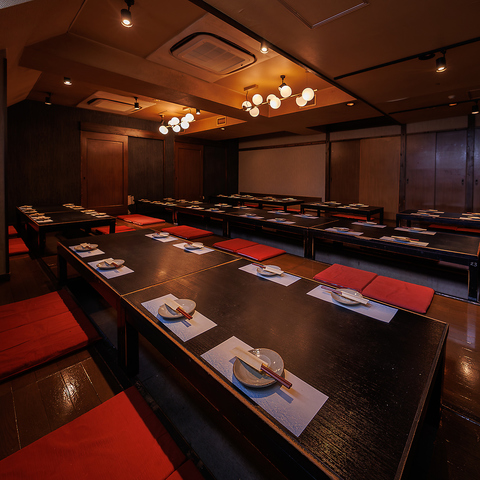 当店は落ち着いた和の雰囲気の掘りごたつ個室を完備しております!お席の種類が豊富のため、多様なシーンにてご利用可能。掘りごたつタイプの宴会場は最大44名様までご案内OK◎幹事様にご満足して頂ける特典も充実♪季節のご宴会・鍋パーティ・会社宴会・忘年会・新年会・歓迎会・送別会・謝恩会・同窓会等、ぜひご利用ください。