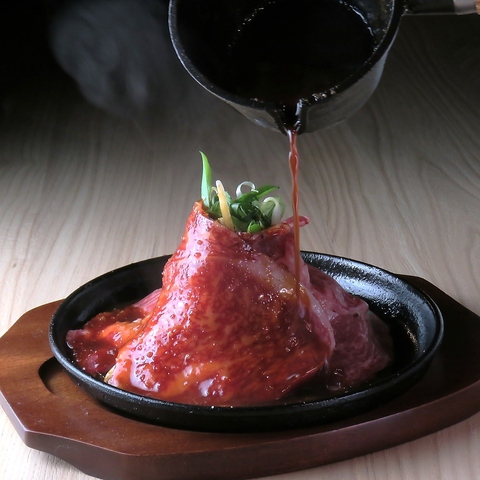 【和牛富士山】すき焼きサイズにカットした和牛リブロースを熱々のタレで蒸し焼きにします