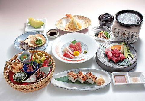 極(きわみ)プランでは、前菜五種や、鮮魚の盛り合わせ、殻付きホタテのバター醤油焼きが食欲をそそる内容◎また、季節の天ぷらや国産牛のサイコロステーキ、焼き穴子寿司で満足感もたっぷり♪特別な日のご利用にもおすすめのプランです!